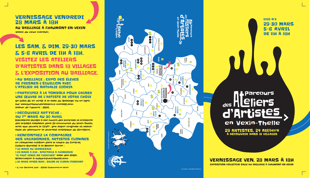 Parcours Ateliers Artistes Vexin-Thelle 2025 : Voici arrivée la 3ème édition de l'événement "PARCOURS DES ATELIERS D'ARTISTES en VEXIN-THELLE" : Venez nombreux !